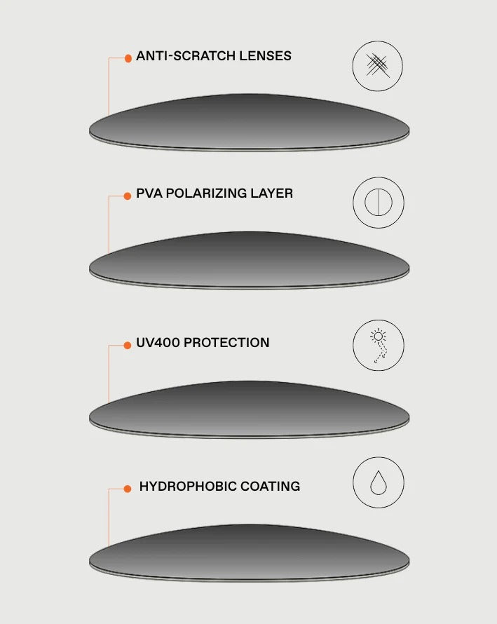 Our sunglasses feature polarized lenses designed to reduce reflections and enhance your visual comfort.